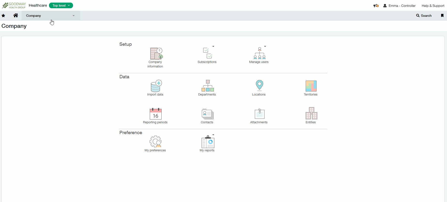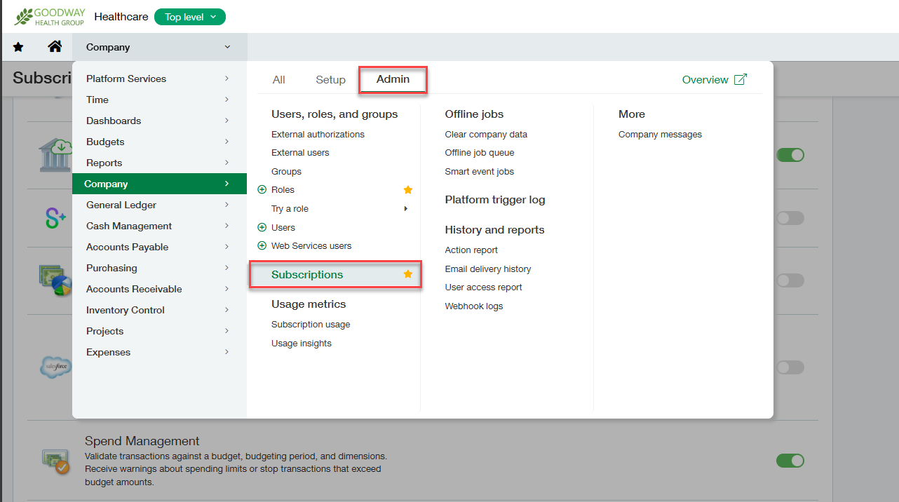 2. Select Company > Admin > Subscriptions