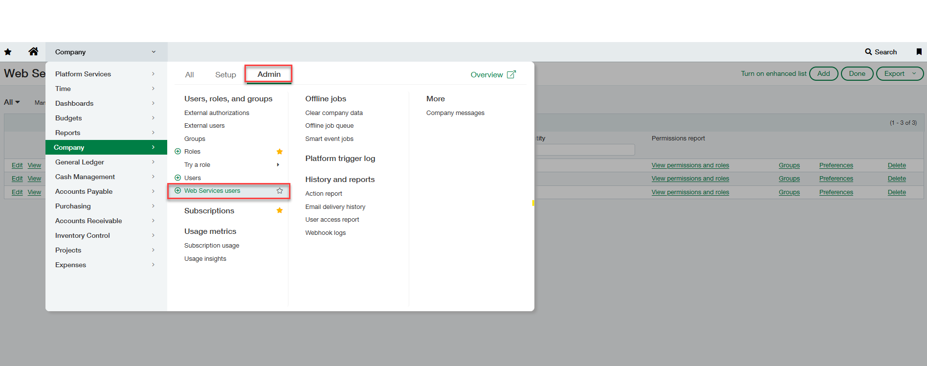 1. Go to Company / Admin / Web Service Users