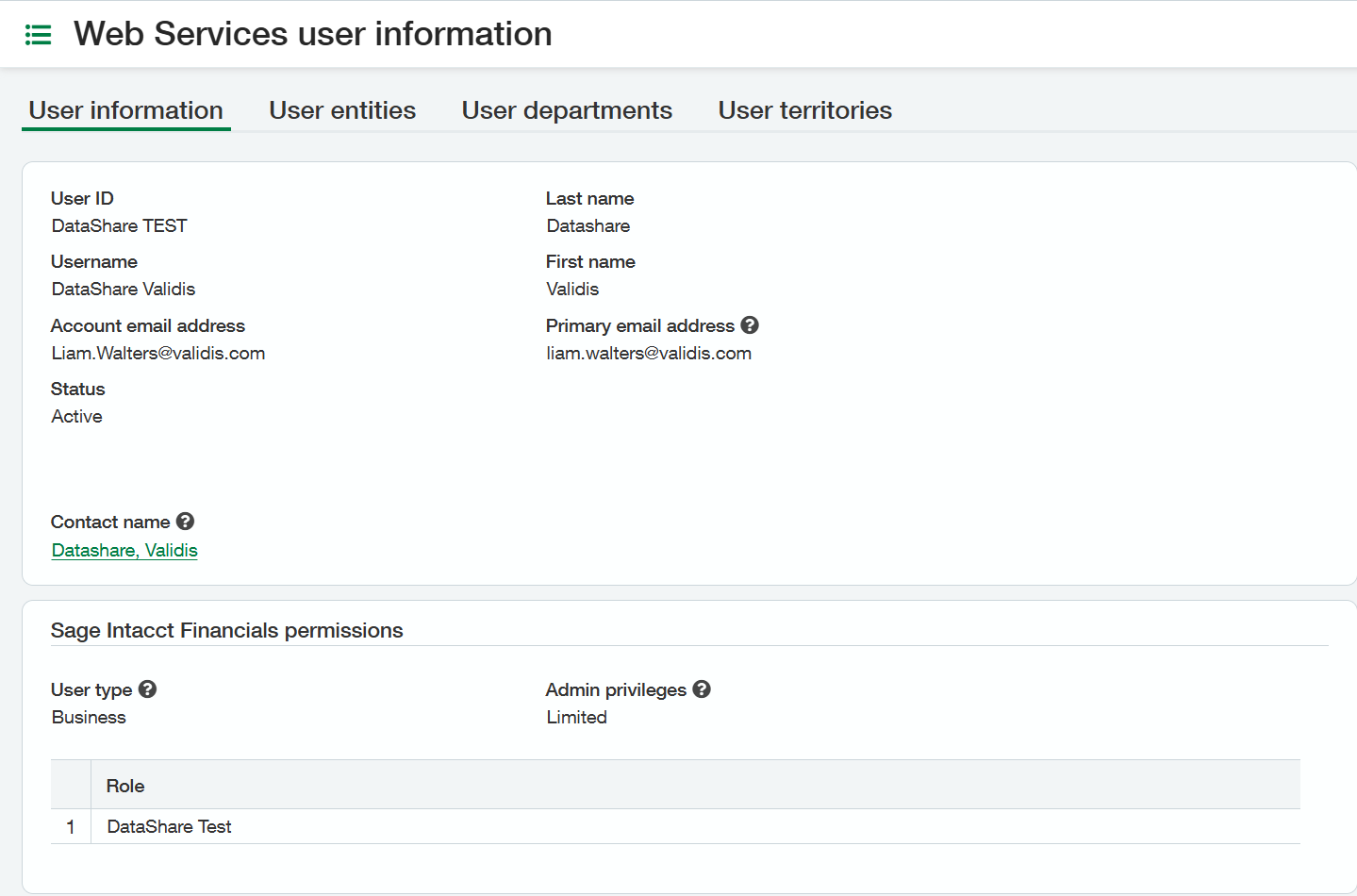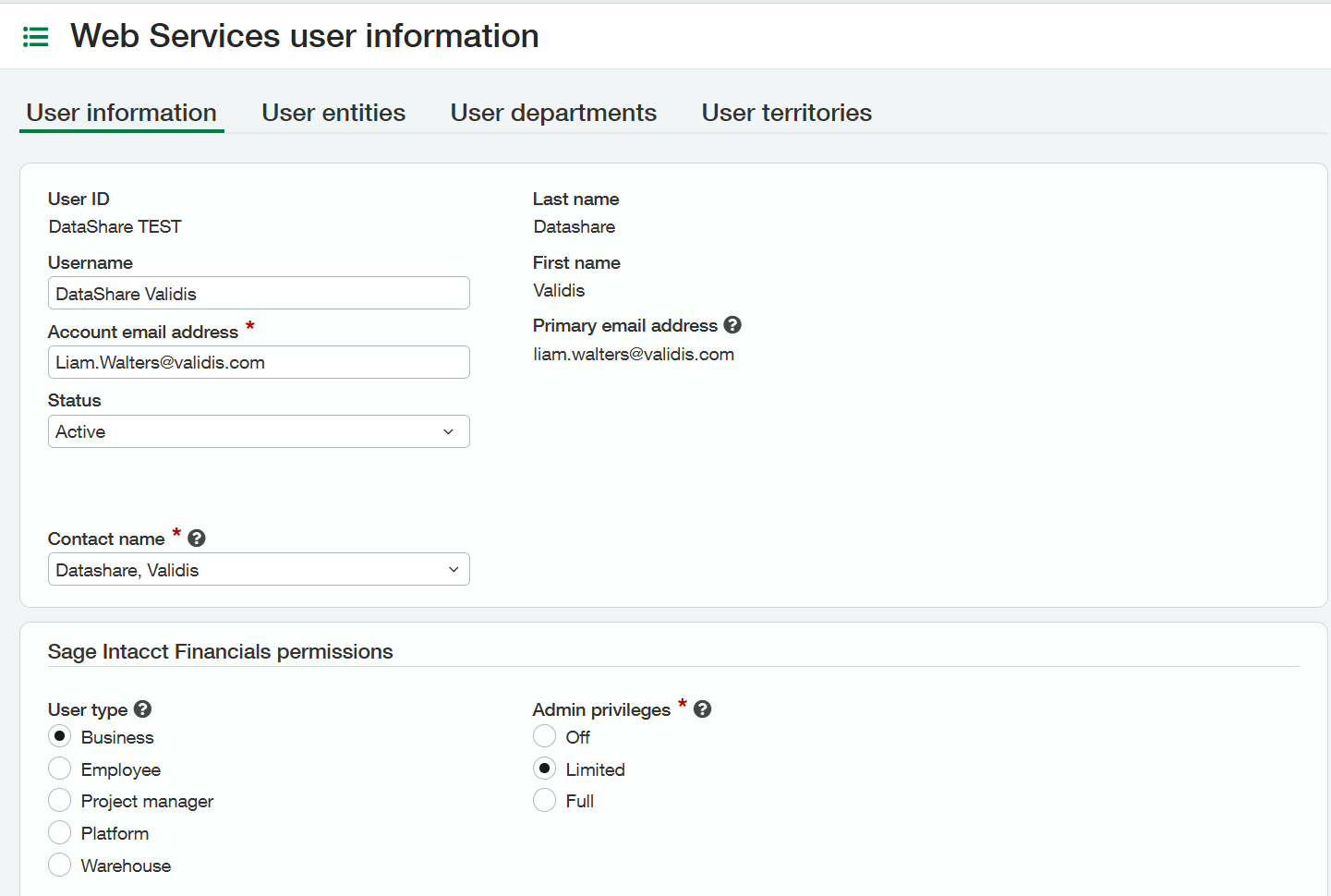 - Account Email address: <Your email address> (Once the User has been created, Sage Intacct will send brand new credentials, which you will need to use to upload your Sage Intacct data)