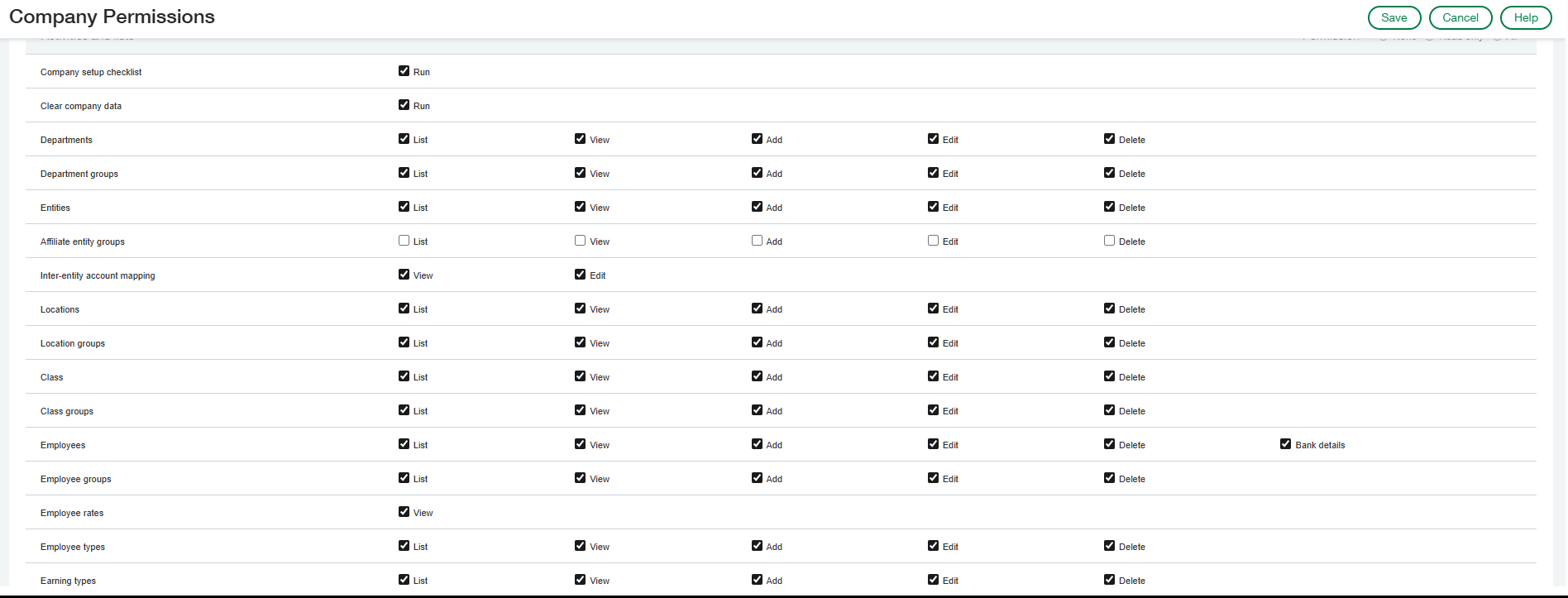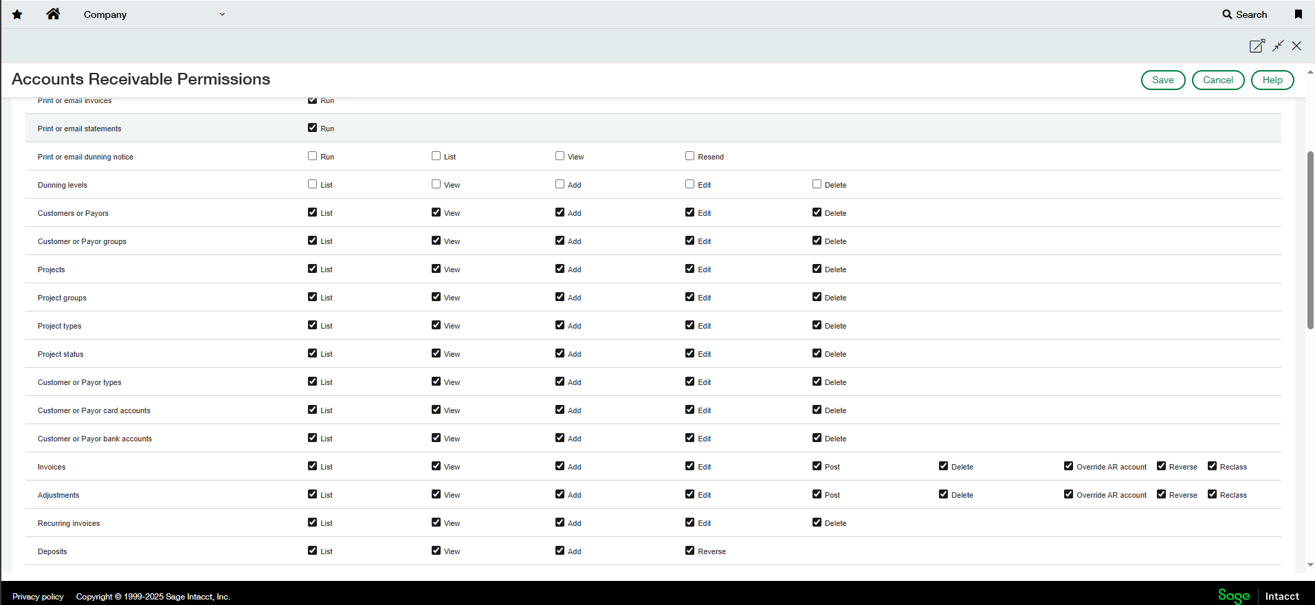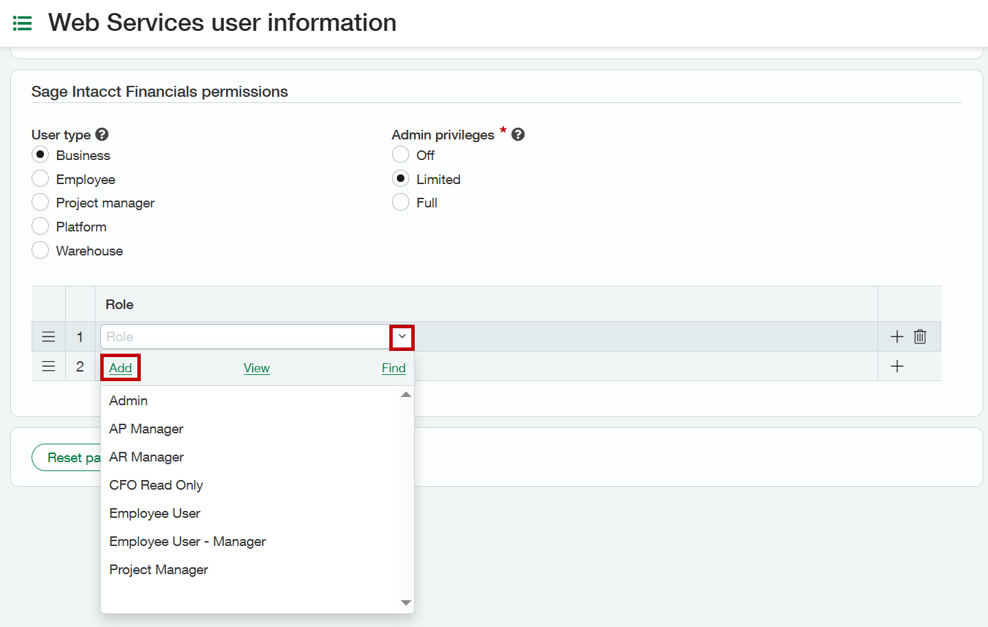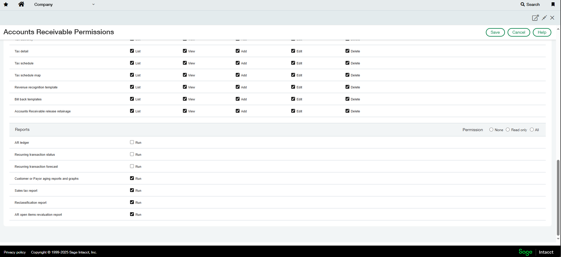 *Note: Due to Sage Inacct requirements the "Edit" access is required for certain permissions to enable a successful extract. Rest assured Validis accesses data in a read-only method and never edits data in the native accounting package.