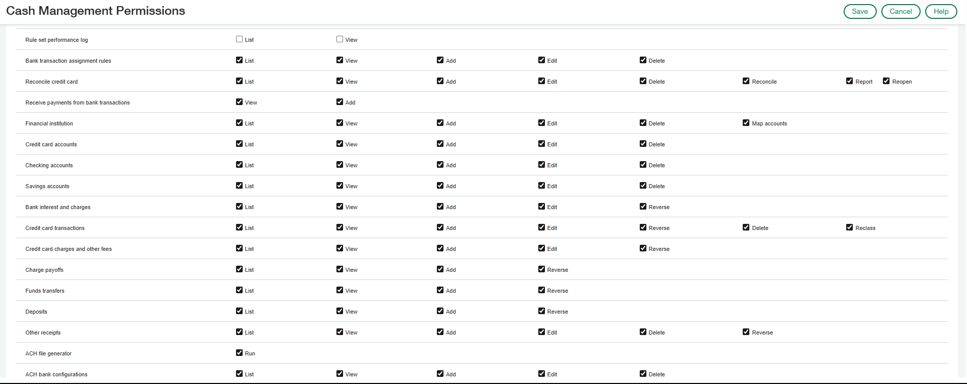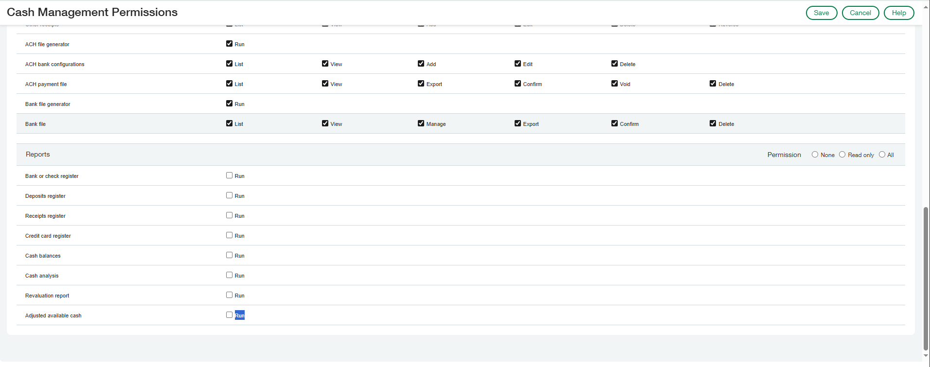 Under Cash Management Permissions select All permissions then Disable the following: